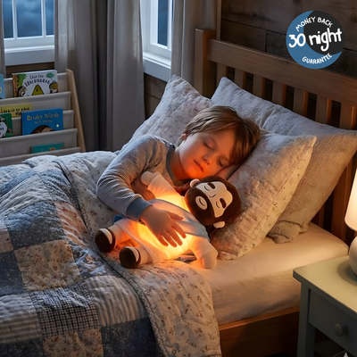 Simply press the 'on' button on the plushie's foot, and watch it come to life, helping you go to sleep without any intervention.